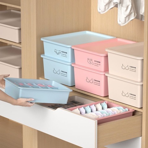 Compartment Underwear Storage Box Socks Box Sundries Sorting Box with Cover Multifunction Stackable Storage Container